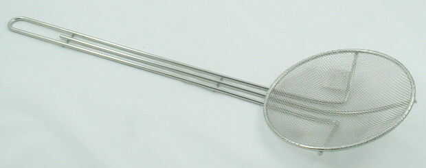 Normalmente utilizo una cuchara de malla de alambre (se usa para freír, etc.) pero se puede usar un colador + filtro de café, nada de alambre de malla, idealmente un $40 + Williams Sonoma wire mesh salpicadura impedimento pero esto puede sustituirse fácilmente con cualquier número de cosas.