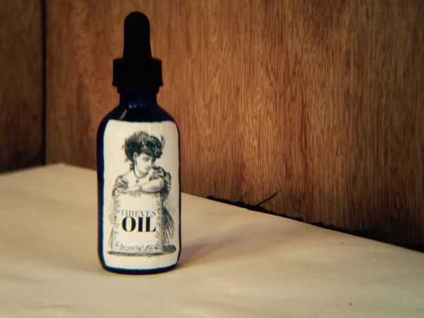 La leyenda dice aceite de ladrones primero fue ideado por un consorcio de ladrones franceses del siglo XV para protegerse de la peste bubónica y robándole las casas y tumbas de los pulsaron muertos de la plaga, por lo tanto, librar a los ricos finales de sus posesiones terrenales. Y dicen que hay no hay honor entre ladrones.