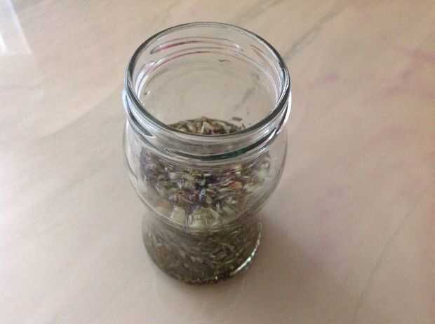 tiempo: 15 minutosElementos de ingredientes:Flores y hojas de lavandaAceite de uvaTarro de masón con tapa* Voy a utilizar mi aceite de lavanda para velas aromas y otras creaciones creativas integrales!Paso 1: cortar Corte en primer lugar, un puñado d