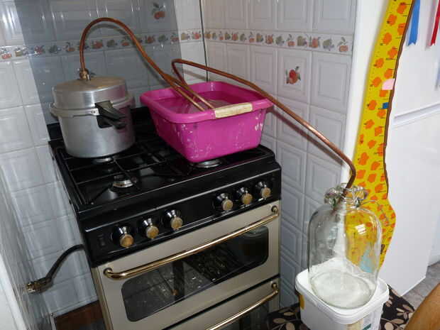 La bobina de cobre conectada a la olla a presión debe estar sumergida en un recipiente llenado de agua fría. Es importante mantener esta agua jarras de frío tan regularmente cambio 3-4 de agua caliente del recipiente, con agua fría del grifo. No hacerlo resultará en su hidrosol ser contaminada y marrón