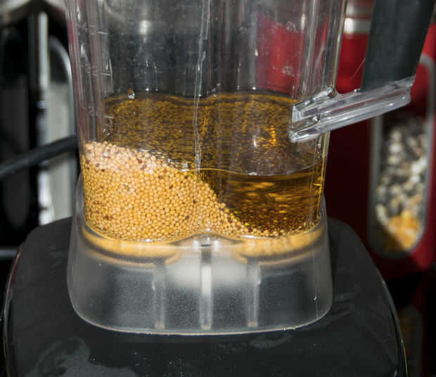 Dependiendo de lo agresivo es su licuadora, desea ejecutar la mezcla durante 2-3 minutos. Funcionó hasta que pude sentir el aceite calentando a través de la pared de la licuadora.