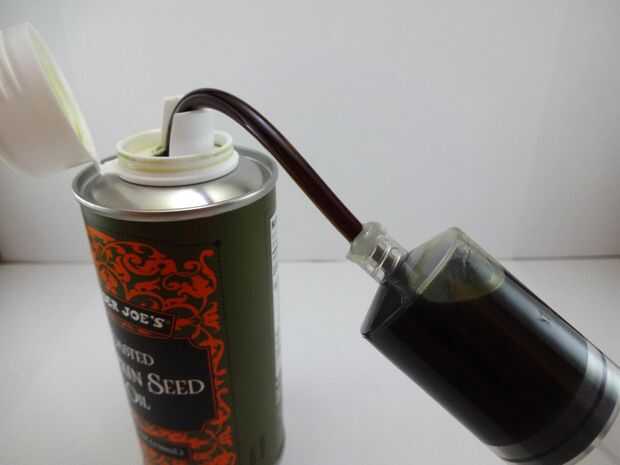 Antes de que coloque a nuestro contenedor, tenemos que llenar con aceite de calabaza.