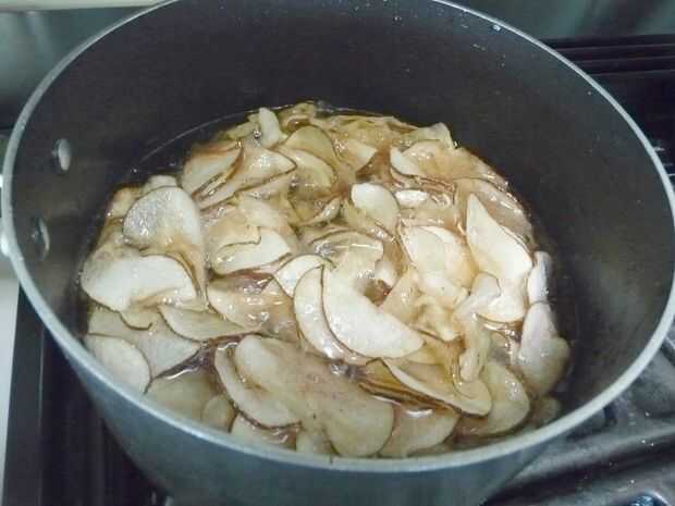 Después de unos 3 minutos, el aceite comenzará a burbujear alrededor de las paredes de la cacerola. Dar a los chips un revolver suavemente con un tenedor. Espere unos minutos más hasta que el aceite llegue a un rápido hervor y revuelva otra vez. Revuelva suavemente los chips cada pocos minutos. (Usted será capaz de sentir su textura van de empapado a firma a derecha nítida a través de la horquilla).