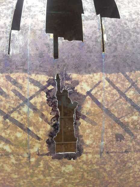 Imprimí de la silueta de la estatua de la libertad y había redimensionada hasta que parecía buena. Después de acabo de cortar hacia fuera y había utilizado como una plantilla. Usé un marcador permanente de color en todo el papel y dejar la silueta de la estatua.
