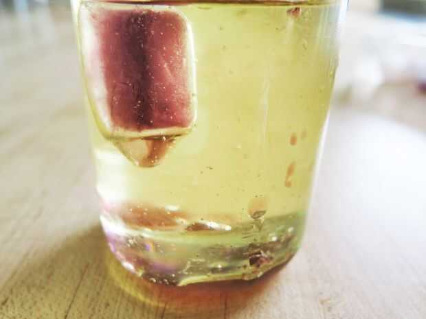 Lo sorprendente de este experimento sucede como deja el cubo de hielo del derretimiento. En el agua normalmente no ves pasar este proceso, pero es bonito en aceite.