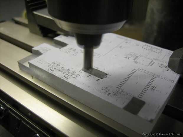 A continuación, molino de espacio para el conector de la batería (el conector viene de una cámara CANON rota :)).