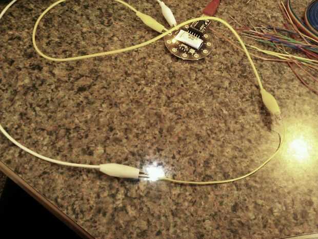 Una vez que ha soldado las luces, verifique que la soldadura trabajada. Utilizar pinzas de cocodrilo y simplemente conéctelos a los pines positivos y negativos del LilyPad.