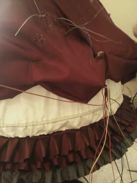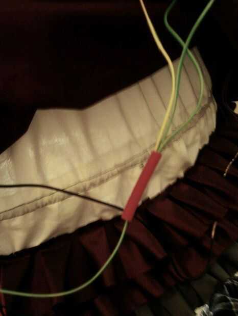 En este punto usted debe tener todas las luces y el acelerómetro conectado al LilyPad. Mina se escondió en un paño en mi falda, pero usted puede poner la placa LilyPad cualquier lugar que te gusta.