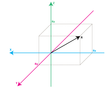 R ^ 2 = Rx ^ 2 + Ry ^ 2 + Rz ^ 2 (EC. 1)