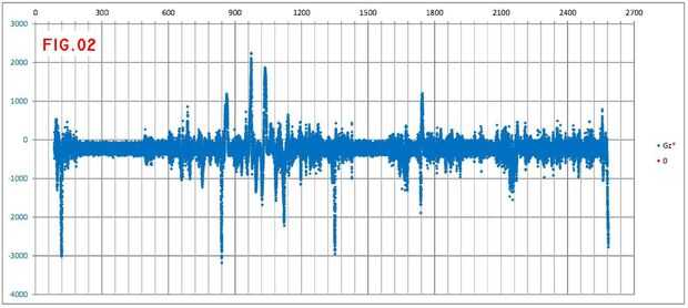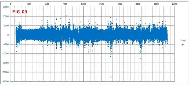 Unidos son algunos gráficos con los datos en bruto (figs. 1, 2 y 3; AX, Gz y Ay) - es la hoja de cálculo aquí.
