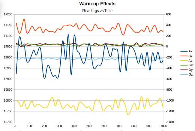 Si el dispositivo es realmente vertical, las lecturas para las aceleraciones deben ser (véase la razón): (16384, 0, 0); y si el aparato era realmente todavía, las lecturas para el giroscopio debe ser: (0,0,0). ¿Así: las lecturas deben todos han sido: [16384, 0, 0, 0, 0, 0]: lo que está mal? ¿O es realmente algo malo?