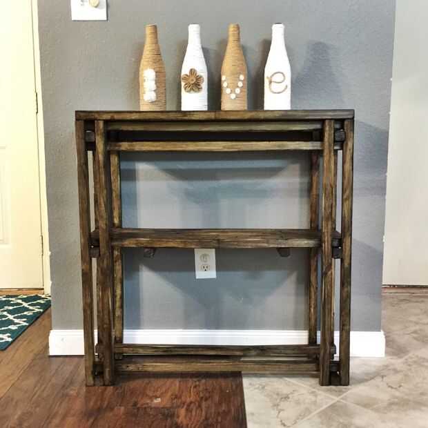 Me molesto con el espacio de un par de meses atrás y tomó una estantería vieja, fea, que alguien nos dio y corta la parte superior. Pintadas amarillo y actualmente ha jugado como una tabla del acento, pero todavía no era cortarlo y ya era hora de "franken-estante" ir. Este proyecto se convirtió en su reemplazo y creo que le queda mucho mejor.