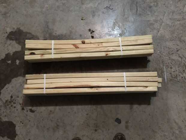 - 36" barrotes de abeto de largo 2 x 2 (32)- En Home Depot, venden en paquetes de 16 por 16 $ en mi zona. Compré 2.