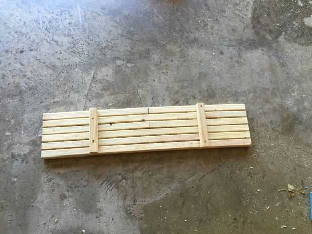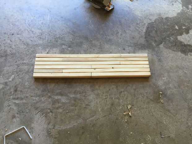 Comencé en la parte delantera y luego atornillar las piezas fila segunda en la primera, asegurándose de mantener sujeta y nivel. Continué mi camino volver atornillar cada una de las piezas en el frente de trabajo, dejándome con una sola pieza que tenía tornillos mostrando, en la parte posterior (mina iba contra una pared y no estaba preocupado por los tornillos que muestra. Lija la parte superior y los bordes otra vez para asegurar un alto nivel.