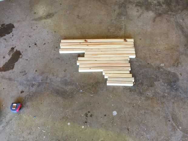 Empecé alineando las piezas superiores exactamente como quería. No quiero que se vea como si hubiese un patrón, así que me mezclar haciendo los cortes al azar mostrar lugares. También, rotaba las piezas alrededor de modo que mostrarían diferentes tonalidades del grano, planeando hacia la mancha que muestra esas diferencias bien.