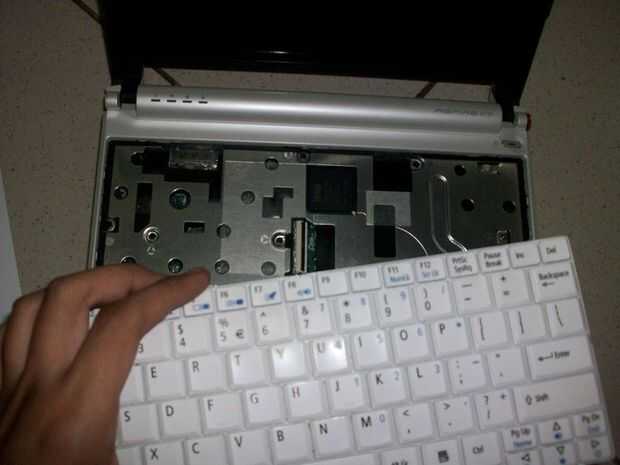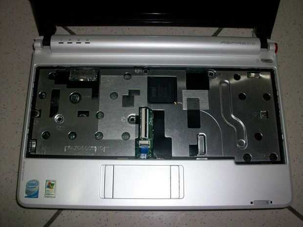 Verás unos tornillos en la placa de metal después de retirar el teclado. Retire todos los tornillos para sacar la cubierta plástica de la netbook. Mantenga sus tornillos en pilas separadas ya que son ligeramente diferentes en tamaño.
