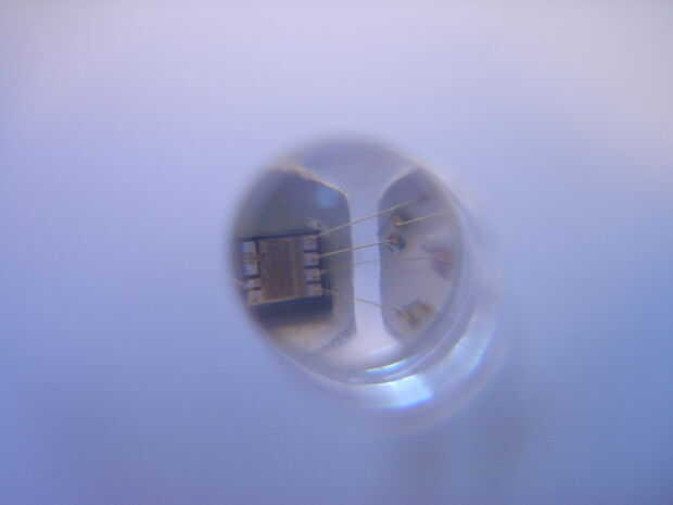 - ¿La séptima imagen es la vista superior de un LED RGB con un microchip, tres LED (no se pueden realmente ver) y los cables que están hechos de oro?