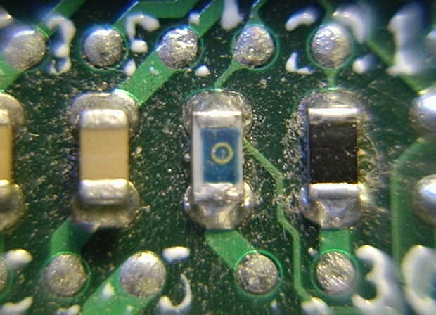 - Las tres primeras imágenes son componentes en la placa de un ordenador PC. (El componente más pequeño se puede ver son no más grande que 2 x 1 mm). Me asombra cuando la placa entera parece Mota de polvo, pero cerca, es verdad que sucia...
