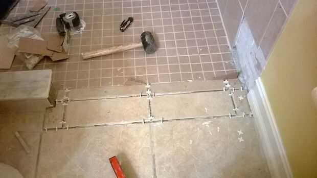 Trabajar con dos o tres fichas a la vez, colocar la ficha y gire en su lugar, utilice el martillo de goma si necesita nivelar el azulejo. Coloque los espaciadores según el espacio necesario.