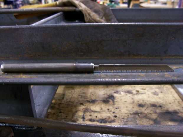 la foto de Google imágenes muestra una sierra de calar con un mango de plástico. Tenía un mango de plástico similar en mi sierra y se rompió. Hice un reemplazo con un trozo de tubo.Paso 1: Marque la tubería de longitud Se puede ver el patrón de la