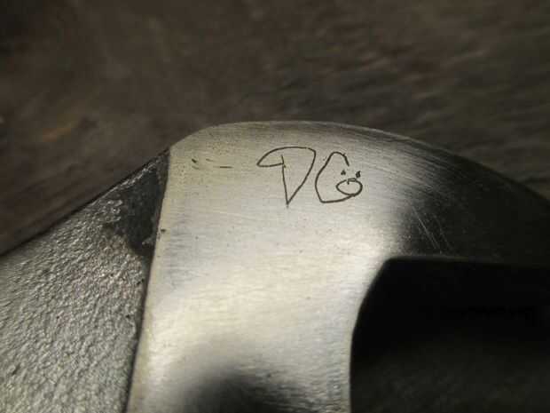 Si quieres un grabado realmente genial como mi logo, mira en conseguir una plantilla hecha. Es mi plantilla y la etch/marca resultante de un proyecto desechado de cuchillo.