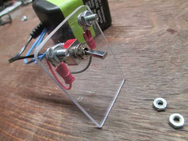 Perfore un agujero para el interruptor, 1/4" para mi pequeño interruptor y los agujeros de conexión eléctrica de 3/16" o Suite tornillos de máquina de lo que tienes. tornillos de máquina 8-32 x 1/2" va a estar bien.