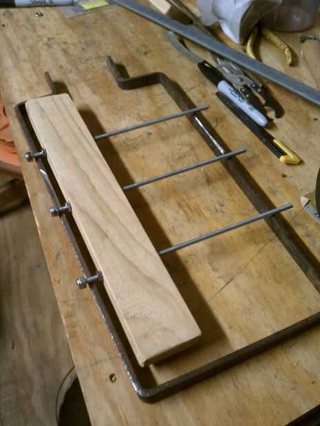 4 cortar tres piezas de hilo todo el ancho del marco de la plataforma (dejé minas un poco largo por ahora)
