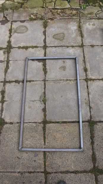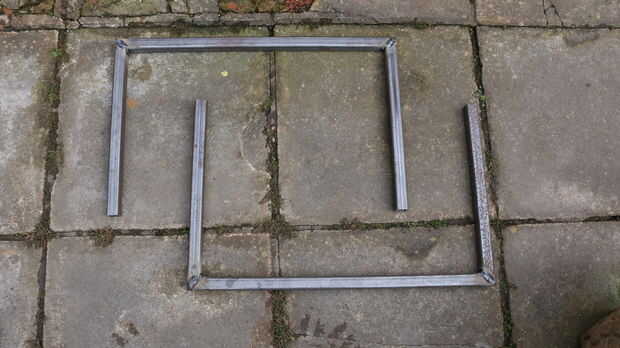 La parte superior es un rectángulo de 4 piezas de acero que también se unió a 45 grados.