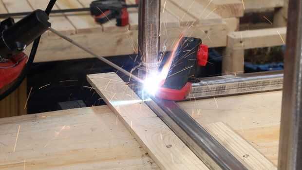 Acababa de usar un soldador de arco y varillas para unir todas las piezas de soldadura corte de antes.