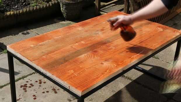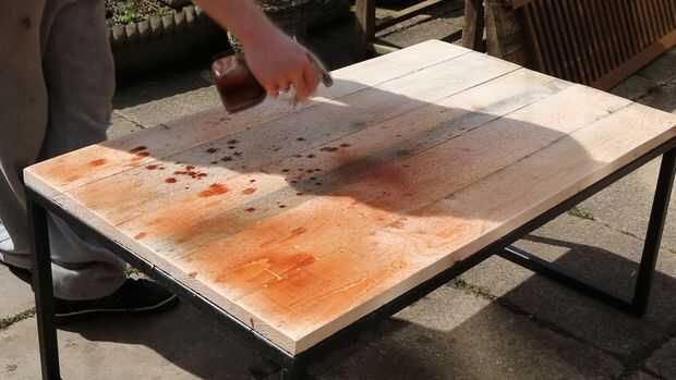 Para dar a la parte superior un aspecto rústico antiguo usé algunas aguadas de tinta para madera color de rosa. Otra vez esto es preferencia personal. Para terminar y proteger la madera he añadido un par de capas de aceite danés.
