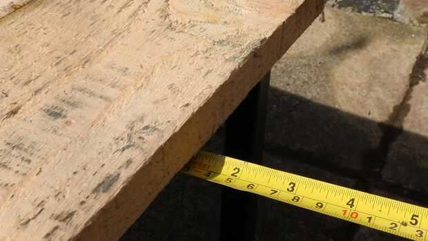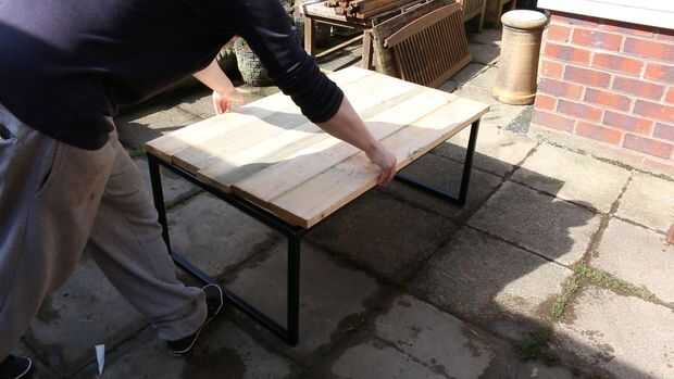 Para la mesa tenía una plataforma rústica apariencia muy agradable. Lamentablemente yo no fue feliz con el grueso de los tableros. Sólo se veían demasiado finas para el estilo de la base de acero. Usé otra paleta que tenía placas más gruesas. Estos tableros donde mucho más limpio pero podemos mancharles más adelante.