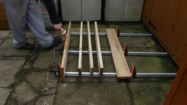 Tan en la tabla vi corte 14mm de cada lado del panel. Este hecho al ras con los lados de la base.