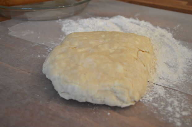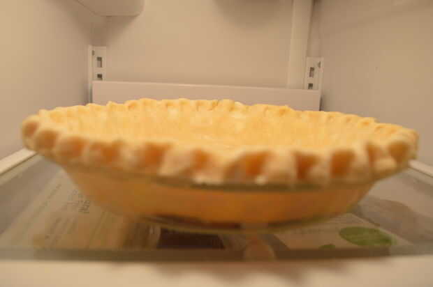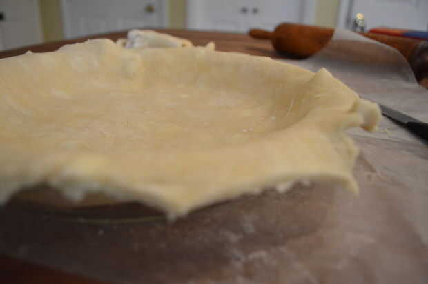 Rodillo enfriado de la masa hacia fuera en pergamino o papel encerado que ha sido ligeramente enharinado.  Enfriar la masa, asegurándose de que trabajar con rapidez.  Si la masa se pone demasiado caliente, que no bien ruede hacia fuera.   Enrolle la masa ligeramente superior a la tartera.  Una vez que la masa se coloca en la tartera, recorte el exceso y los bordes de la flauta.  Enfriar el pastel y masa de empanada por lo menos 10 minutos antes de hornear.