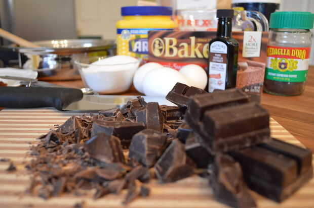• 1 1/3 taza de chocolate semidulce picado