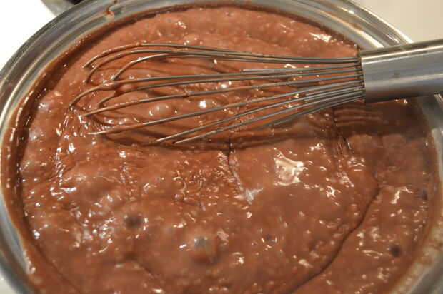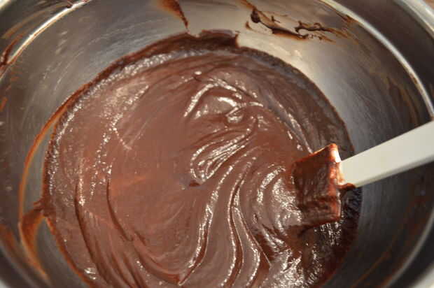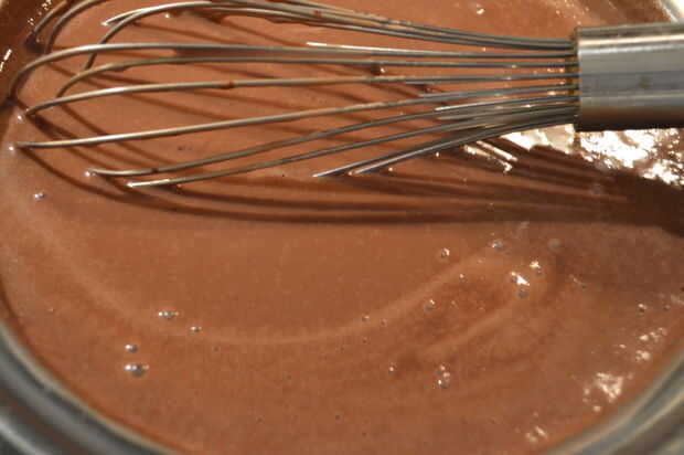 6) mezclar hasta que el chocolate se derrita y la mezcla esté suave.