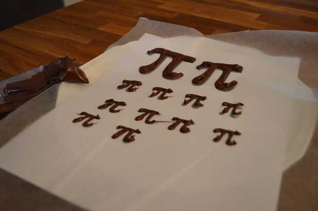 la meta: un pastel en forma de pi para el día de Pi. Pero ¿cómo?Paso 1: plantilla En primer lugar, dibujar un pi agradable, grasa en un papel y recortarlo.Paso 2: Molde de formaEntonces, la tachuela la plantilla sobre un bloque de espuma de florister