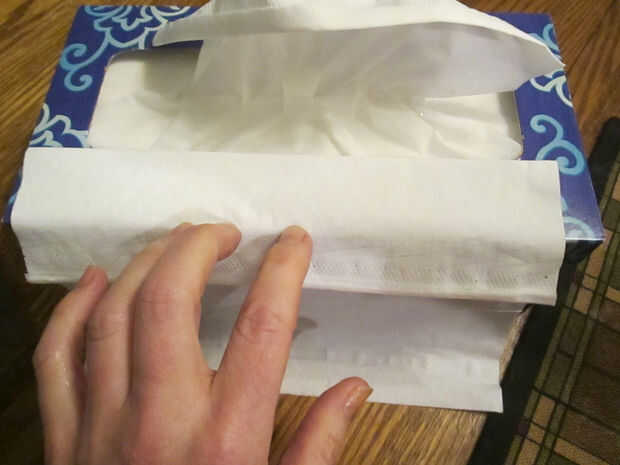 Hacer una caja para montar en la caja de kleenex no es necesario. Sacó uno para comparar la diferencia del tamaño de la caja a los tejidos. Crees que sería un ajuste de cierre, pero no, hay un montón de espacio de maniobra.