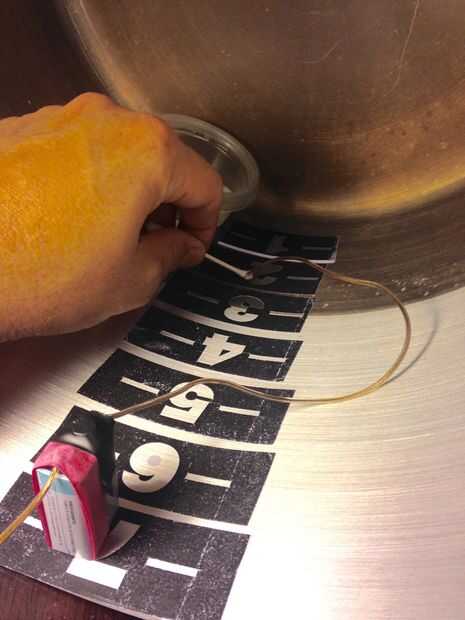 Sumerja el hisopo en la solución de vinagre, toma una respiración profunda, dejar salir, relajarse y ser paciente. Esto tomará un poco de tiempo. Frote la punta de la q-Tip donde desea grabar. Si todo está correctamente conectado y la batería tiene buena carga, veremos algunas burbujas provenientes de la porción de alambre conectada al q-TIP, así como una débil brizna de humo (es decir supuestamente muy malo para usted!). Después de pasar sobre cada número tres o cuatro veces, todavía sentía no era grabado muy bien así que dejé la olla hacia fuera durante la noche y no aclaración hasta mañana. Yo estaba muy contento con el resultado final.