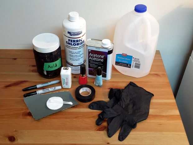 • Etch resist/plantilla - es decir. Uñas esmalte, pegatinas, vinilo, cinta aislante, marcador Sharpie