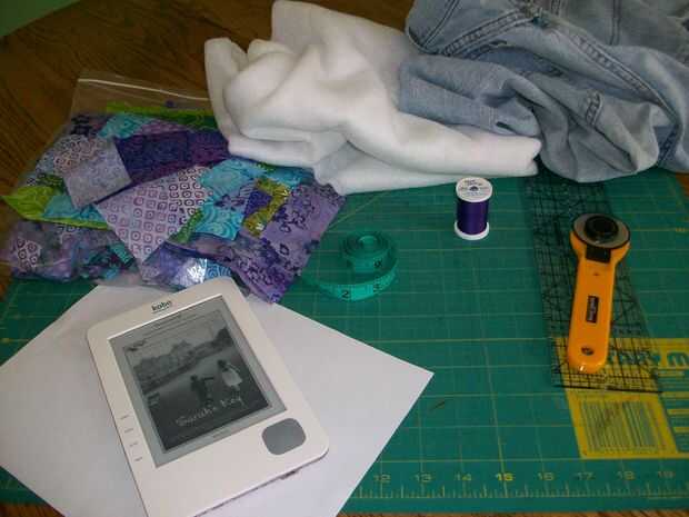 Materiales: telas, guata, hilo, velcro (utilicé un viejo par de pantalones vaqueros para el revestimiento y parte posterior del exterior)