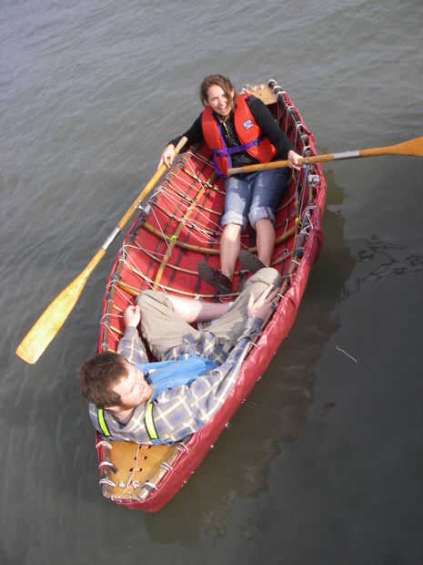 Apenas como que se hizo y el tiempo para ponerlo en el agua. La piel es todavía muy arrugada alrededor de los bordes, pero es agradable y suave en la parte inferior y las filas de bote rápidas. Con el tiempo se estira y le apretamos los cordones hasta que encaje perfectamente.