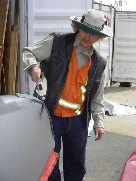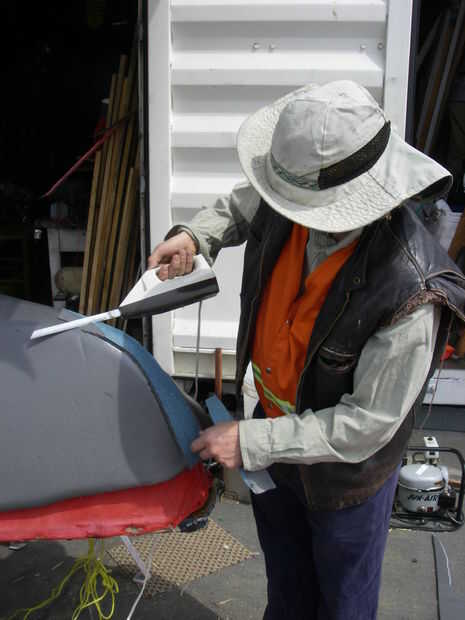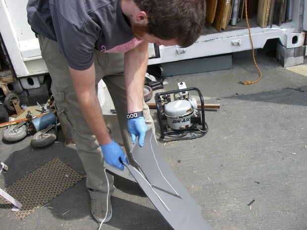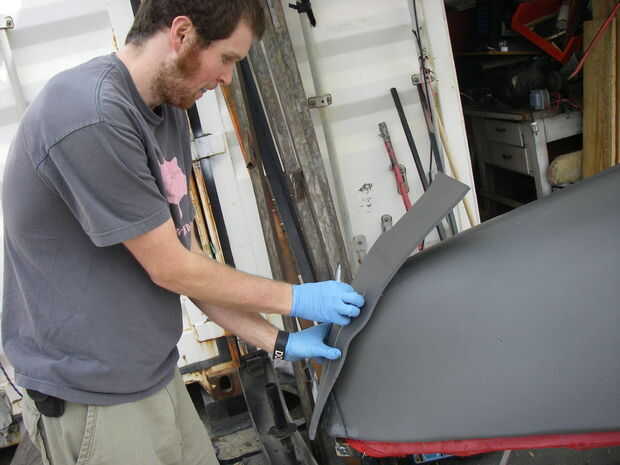La espuma en los tallos se había separado. Creo que no hago la capa de espuma lo suficientemente grande. Hemos añadido un gore de espuma gruesa, luego Ray mide y corta una capa fina de espuma para pegar en la parte superior. Esta vez hemos seguido las indicaciones y permita que el cemento de contacto se pegajoso antes de juntar las partes.