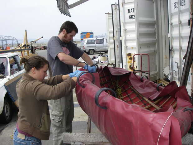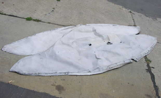 Esto era difícil de averiguar. La vieja piel vista aquí había estirado para caber perfectamente el barco. Es difícil ver cómo cortar la piel nueva, por lo que sería lo suficientemente apretada pero no demasiado apretado para adaptarse.