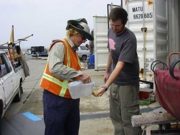 Tuvimos un montón de cable al latigazo de la piel en con, pero necesitamos saber si es de Nylon o poliéster. Nylon alarga aproximadamente el 10% cuando se moja, y eso la hace tener sueltos. Así medimos un trozo de cable, había empapado con agua y mide otra vez. No es nylon! Proceder al siguiente paso!