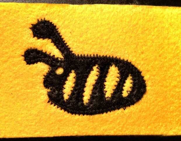 La abeja realmente iba a ver mucho más lindo y menos agresivo, pero la puntada de zig-zag a looke como tenía los dientes:).