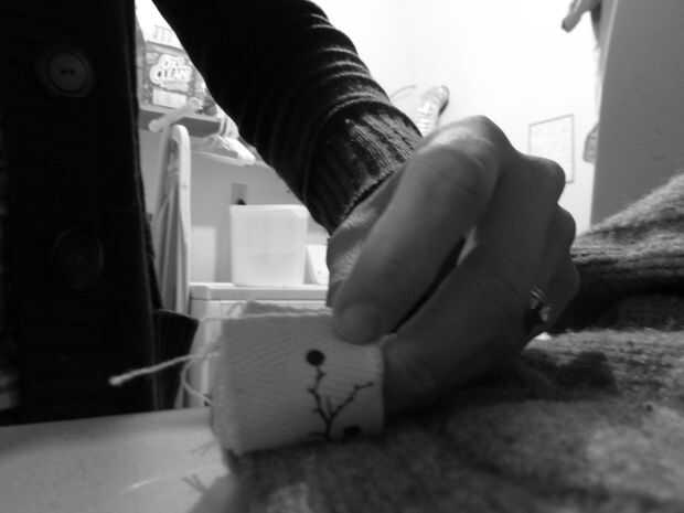 Para colocar la etiqueta, medida 3" de la parte inferior de su calentador de la pierna y colocar la etiqueta sobre ella. Coloque la etiqueta con la cara de impresión hacia abajo y prender. Por coser la etiqueta como esta, se pegarán fuera de su calentador de la pierna (moda así, que tengo que decir).