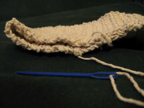 Doble a la mitad la acogedora. Con una aguja de tapiz, utilice las dos largas colas para coser los lados de su acogedor de gadget. Si tu cola es suficiente, usted podría simplemente crochet los bordes juntos. (Tendrían que ser bastante larga, aunque...)
