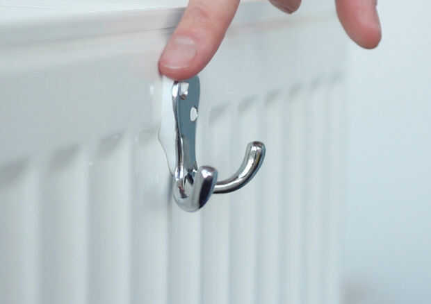 Paso 3: Pulse el gancho firmemente sobre el radiador hasta que algunos de los squidges de Sugru hacia fuera alrededor del borde. (se siente bien poco!)