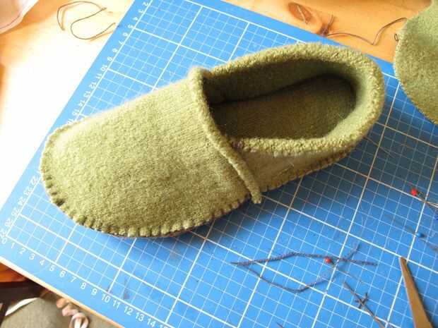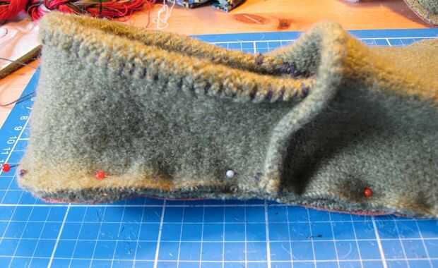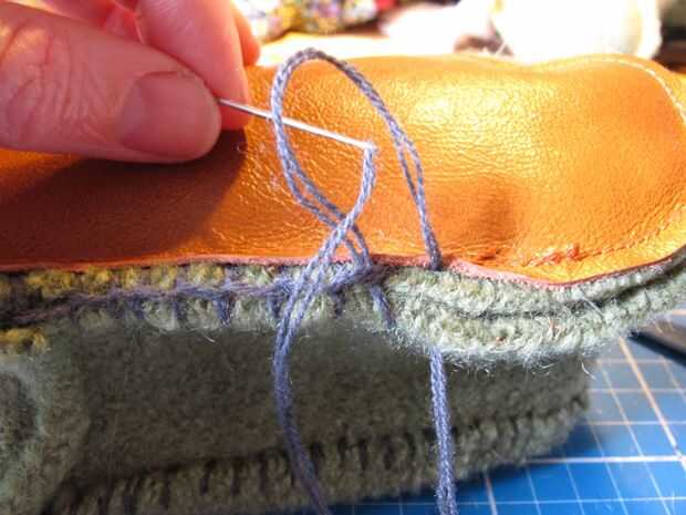 2. puntada manta juntos los bordes (ver sugerencia en el paso siguiente). Manta solo suturan los bordes de la dos tela y dejó fuera el cuero, mientras pensaba en el cuero puede proteger los puntos de desgaste un poco.