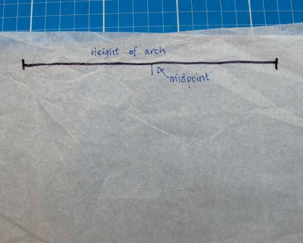 4. en su papel, dibuje una línea de la longitud de su 'altura del arco (A)' y marcar su punto medio.